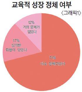 설문 결과, 88%의 가정이 팬데믹 기간 중 자녀의 교육적 성장 정체 또는 퇴행을 겪었다고 답했다. 심각한 퇴행이 있었다는 응답도 17%에 달했다.