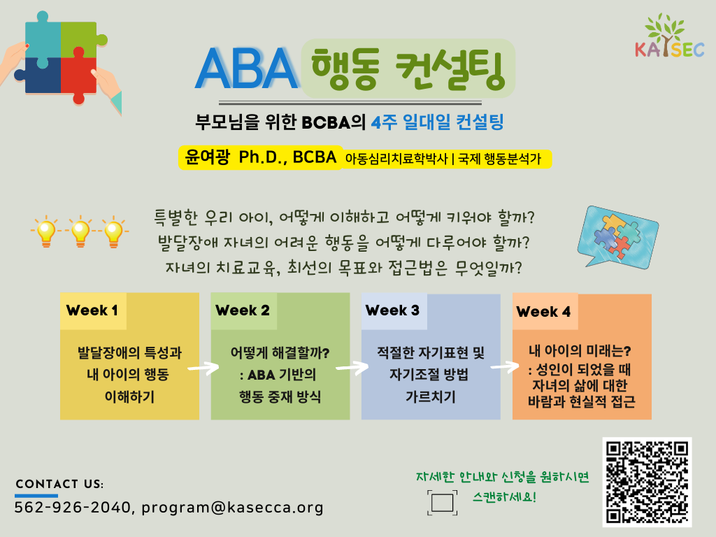ABA나 여러 떼라피를 하고 있지만, 부모로서 무엇을 어떻게 해야 자녀를 올바로 도울 수 있을지 고민하시는 부모님들을 위해